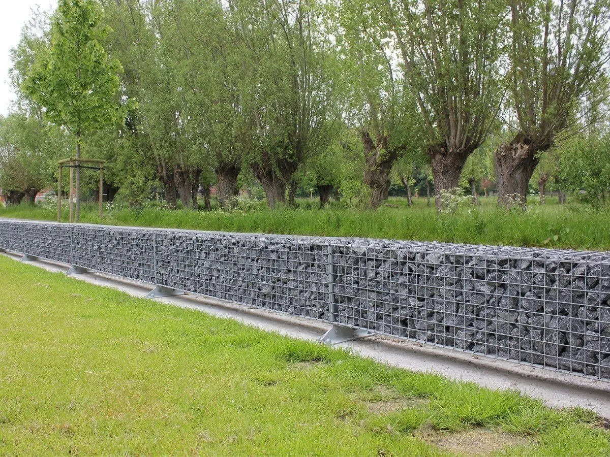 אם לא תעגן את גביוני ECCOfence בבטון, הם עשויים ליפול. הדרך הבטוחה היחידה להתקין גביון היא להעמיד אותו על יסודות מבטון (לפחות 350 ק"ג צמנט/מ³).
