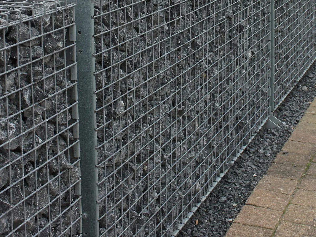 4. 2 צדדים עם לוחות חיזוק: לוחות מגולוונים בסנדזימיר 215 גרם/מ². בזכות הצדדים המחוזקים, הסיכון לעיוותים בגביון מצומצם למינימום. מספר חורים מספקים פיצוי עבור שוני בגבהים. מגובה 1 מטר, מסופק גם זווית חיזוק נוספת. חורים כבר קיימים בלוחות הצדדים לחיבור מספר גביוני ECCOfence KIT אחד לשני (כדי שיהיה ישיר ומסודר). אם רוצים, ניתן להזמין בנוסף גם לוח רשת צדדי כך שהאבנים יהיו נראות גם מהצד.